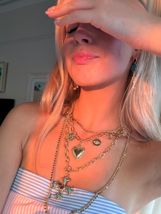 This necklace collection allows you to add up to 3 loop-on charms in the centre of the necklace. You add them on to a little loop with a hinge. Charms are sold separately so you can create your own design! This necklace comes in 2 lengths, short and Long.