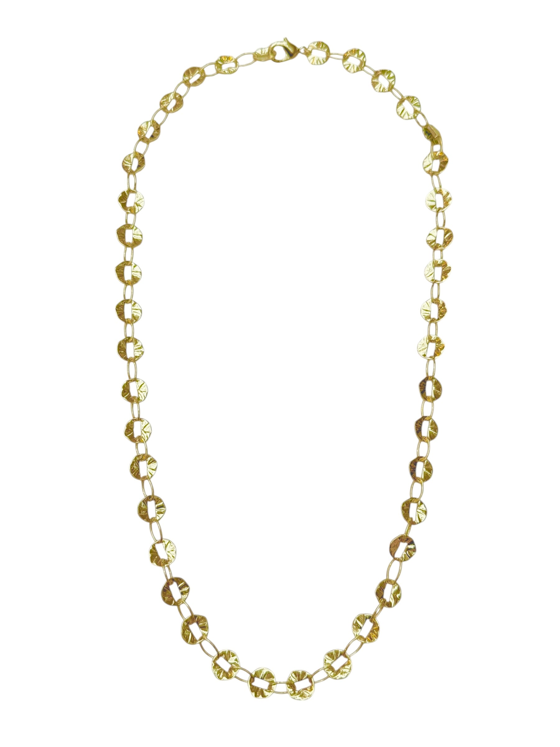 18k gold plated adjustable long necklace with ornate chain. Up to 27 inches.