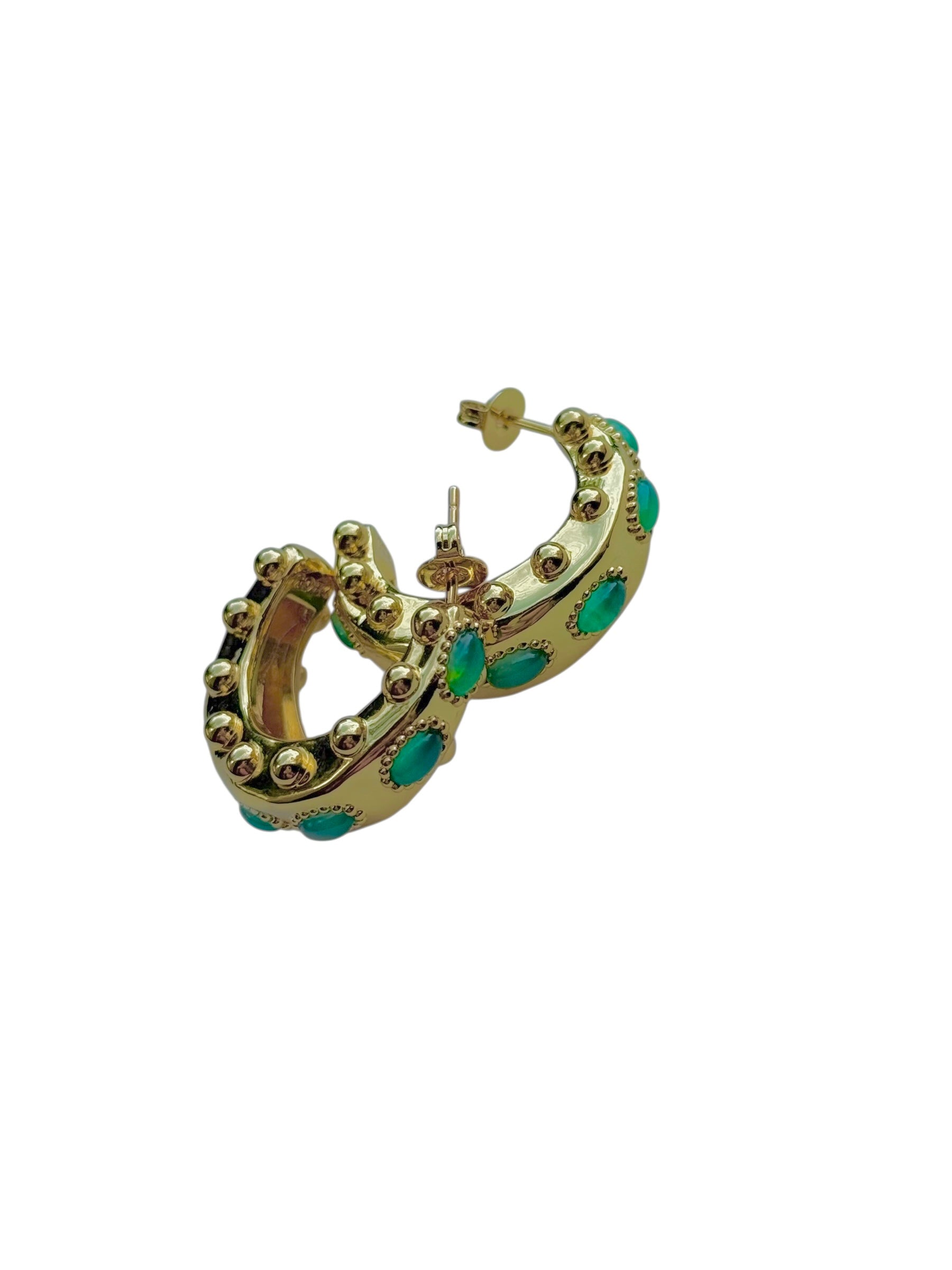 - 18k gold plated green onyx gemstone stud hoop earrings
