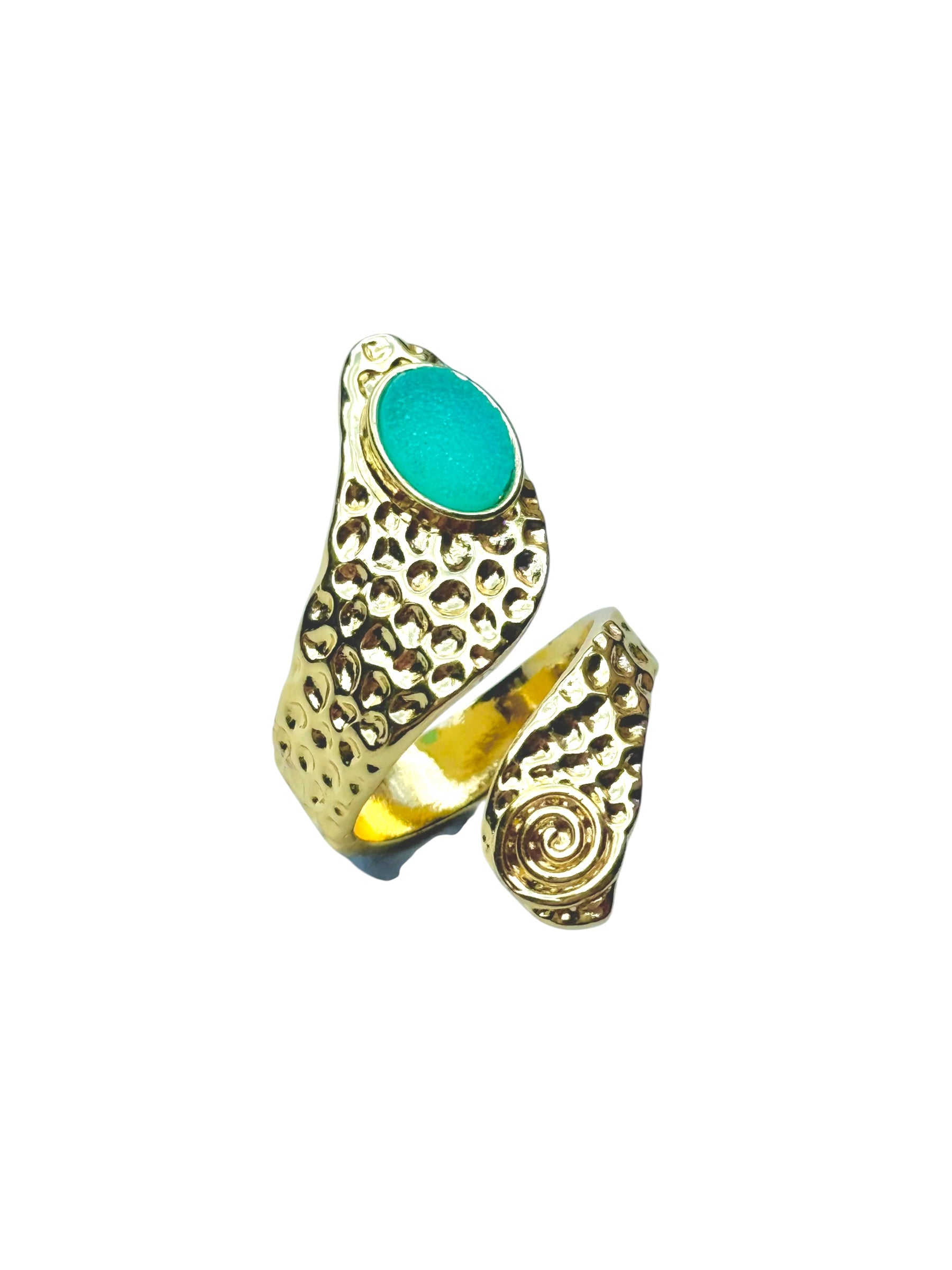 18k thick gold plated adjustable ring with amazonite gemstone