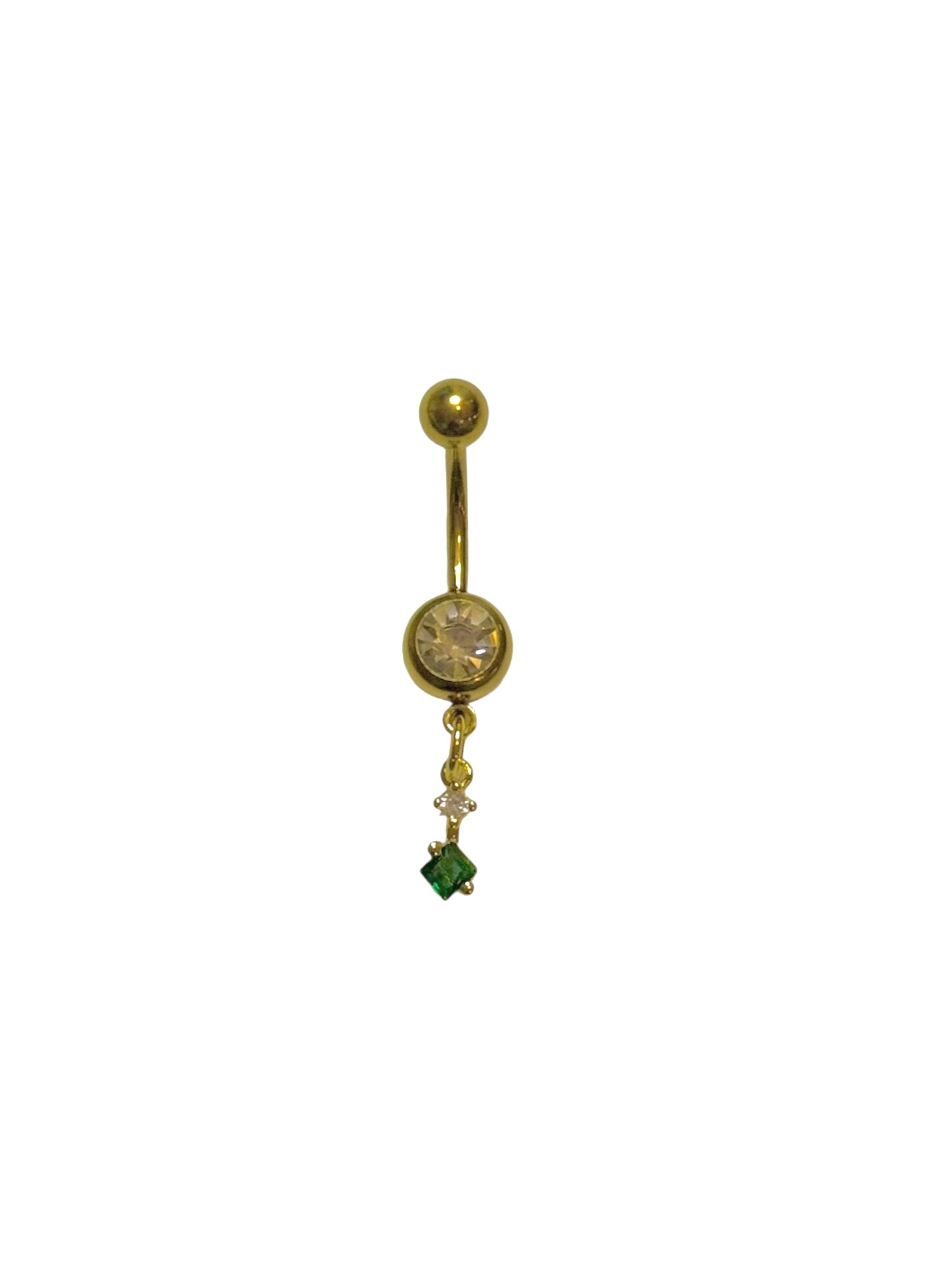 Surgical Stainless Steel belly bar with Gold Titanium plating and a clear cz stone.
