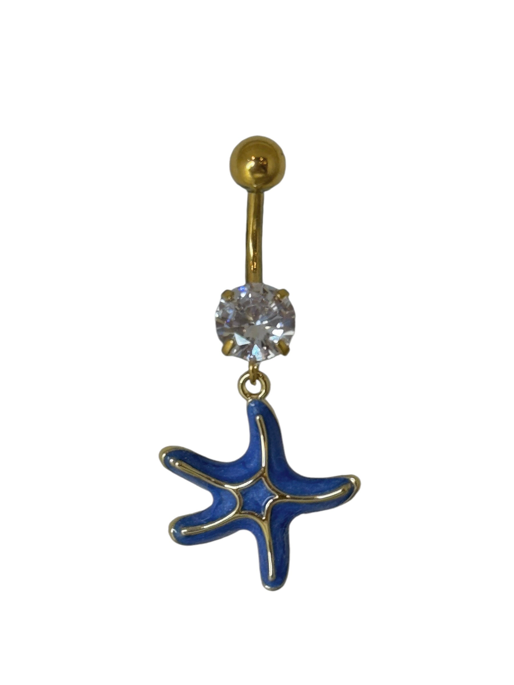 Surgical Stainless Steel belly bar with Gold Titanium plating and a clear cz stone.