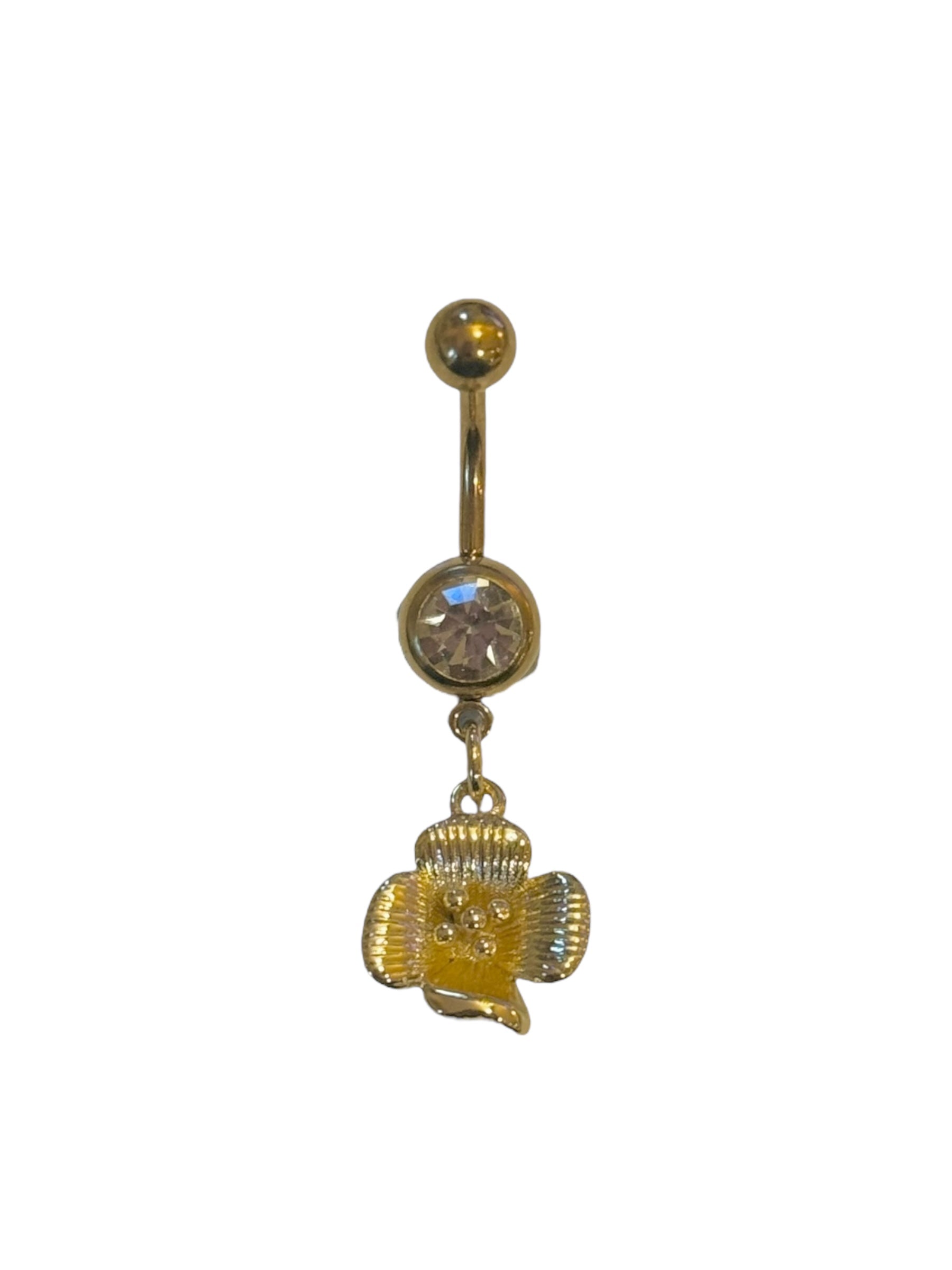 Surgical Stainless Steel belly bar with Gold Titanium plating and a clear cz stone with 18k gold filled charm.