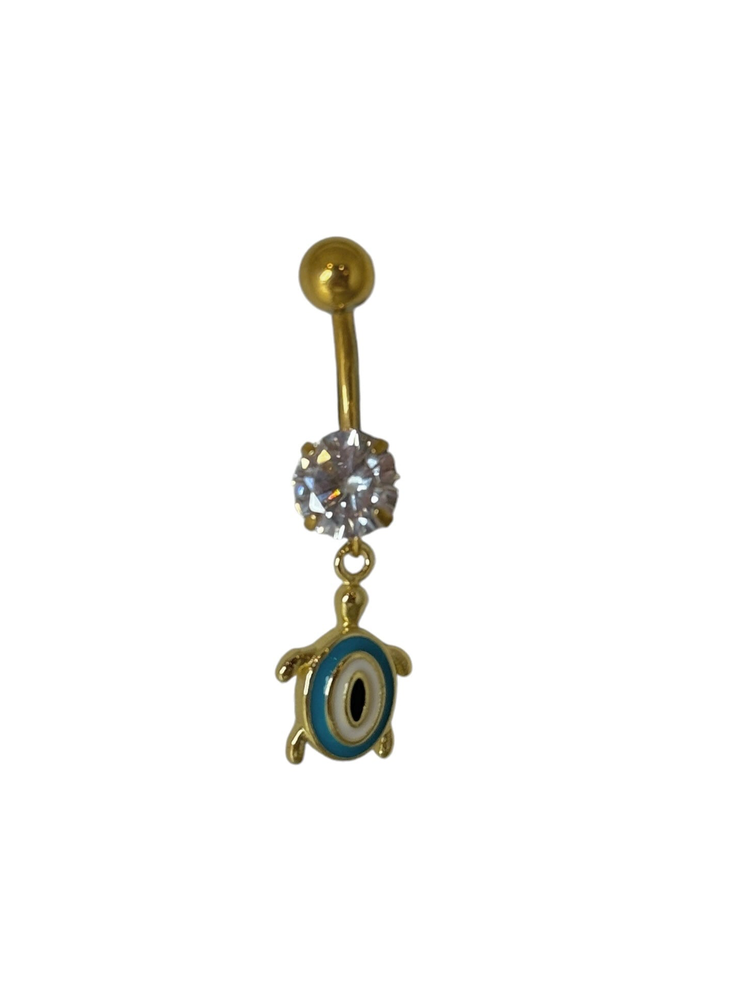 Surgical Stainless Steel belly bar with Gold Titanium plating and a clear cz stone.