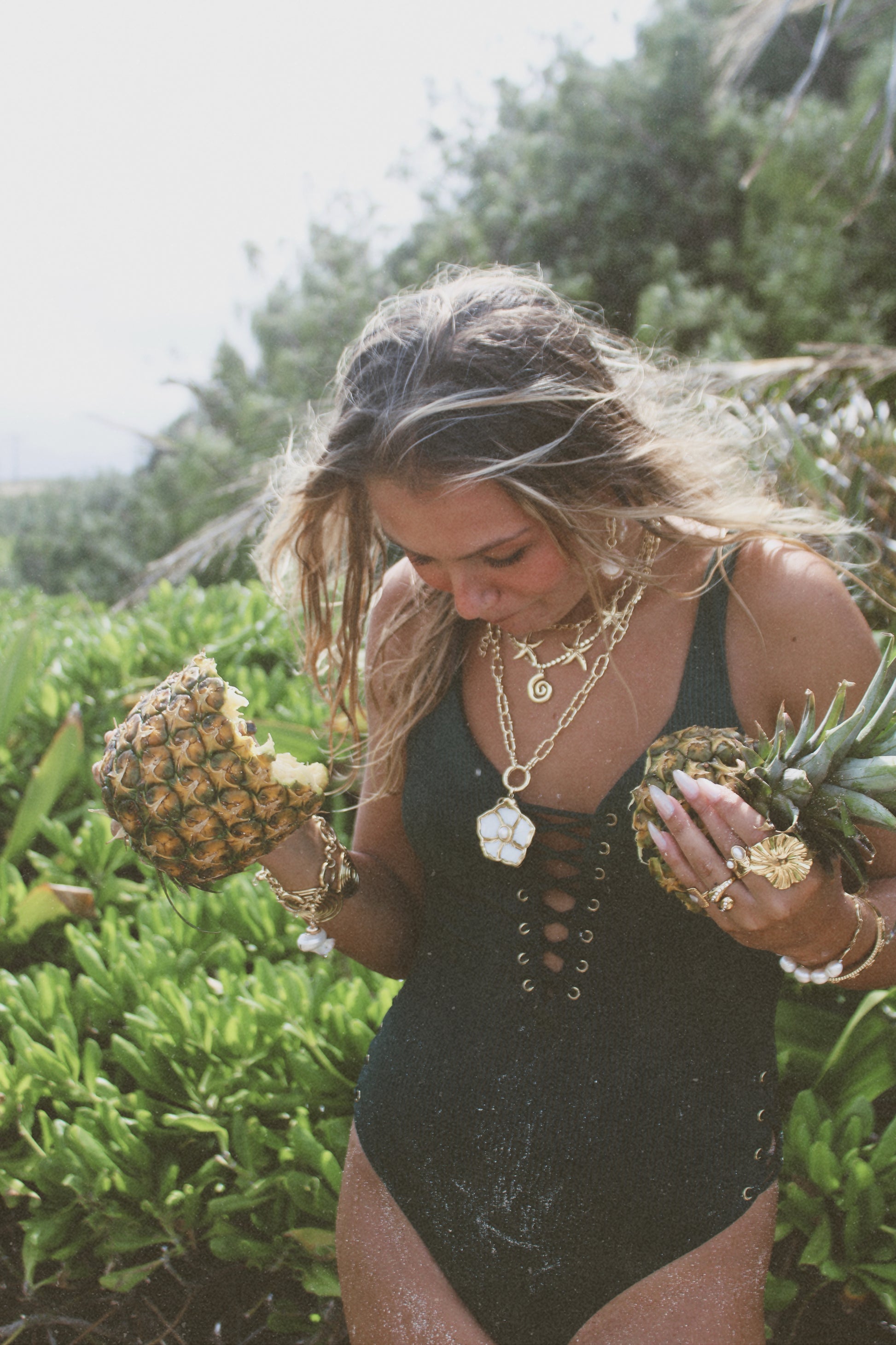 18k gold plated 20 inch necklace with mother of pearl shell flower charm.