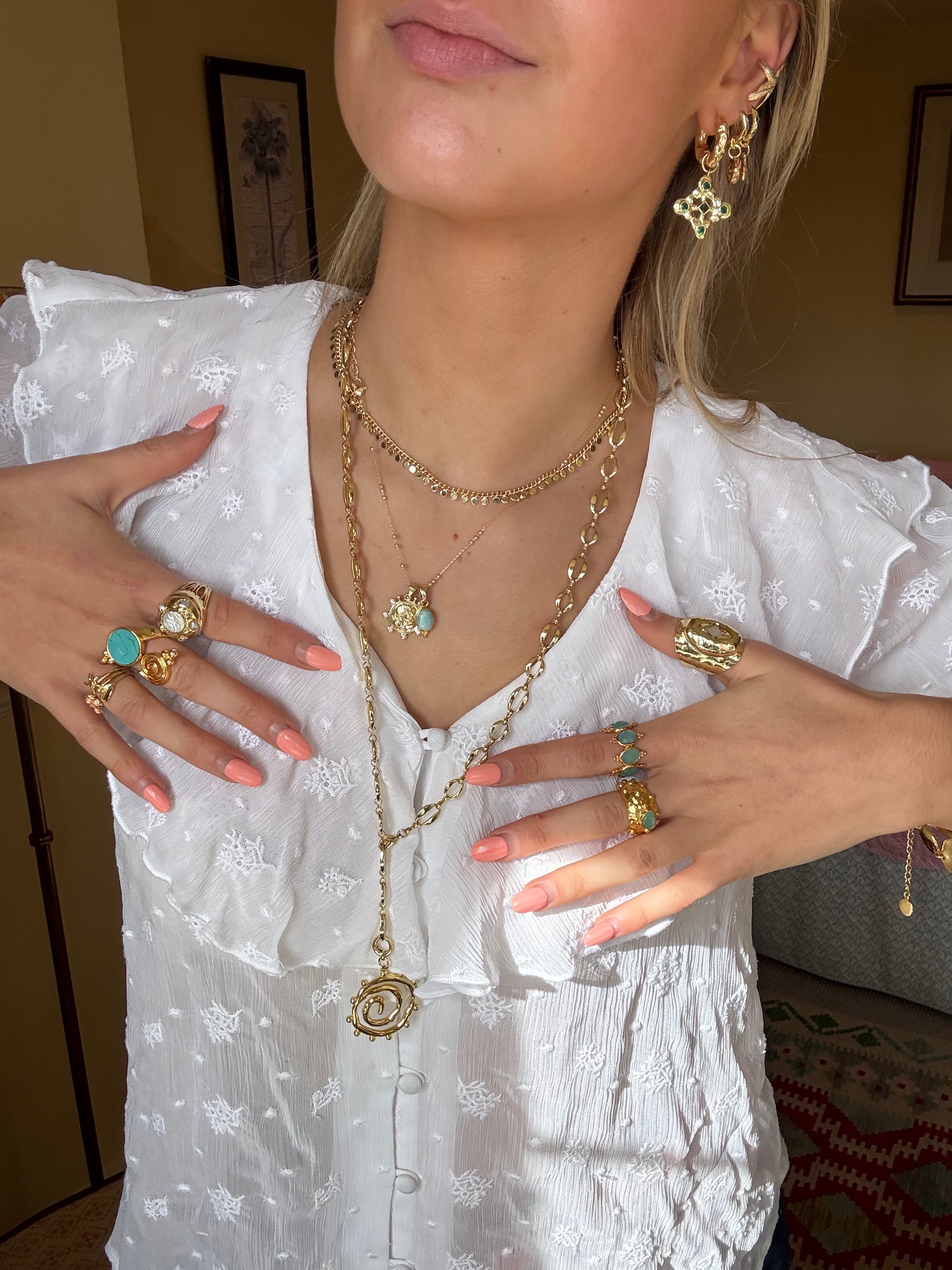 18k gold plated adjustable up to 18 inches Larimar and roman coin necklace.