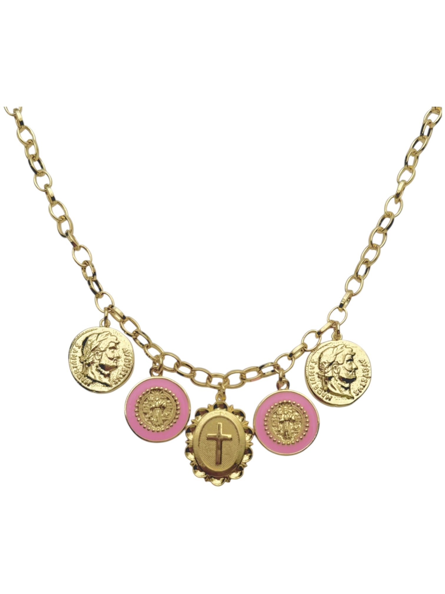 18k gold plated chain with 18k gold filled pendants and adjustable up to 20 inches.