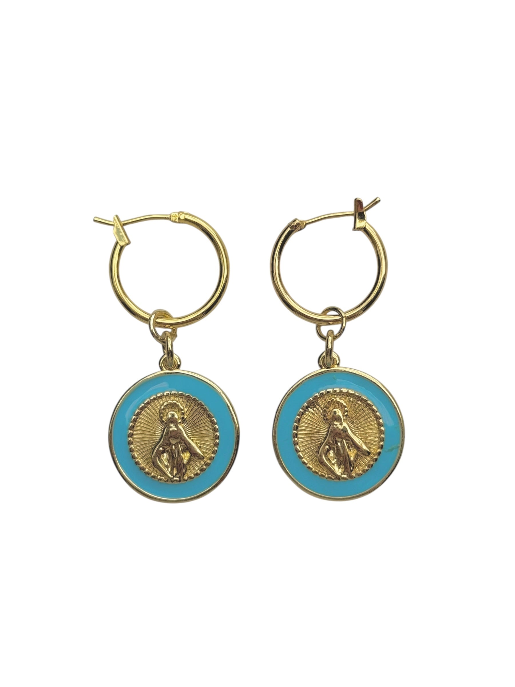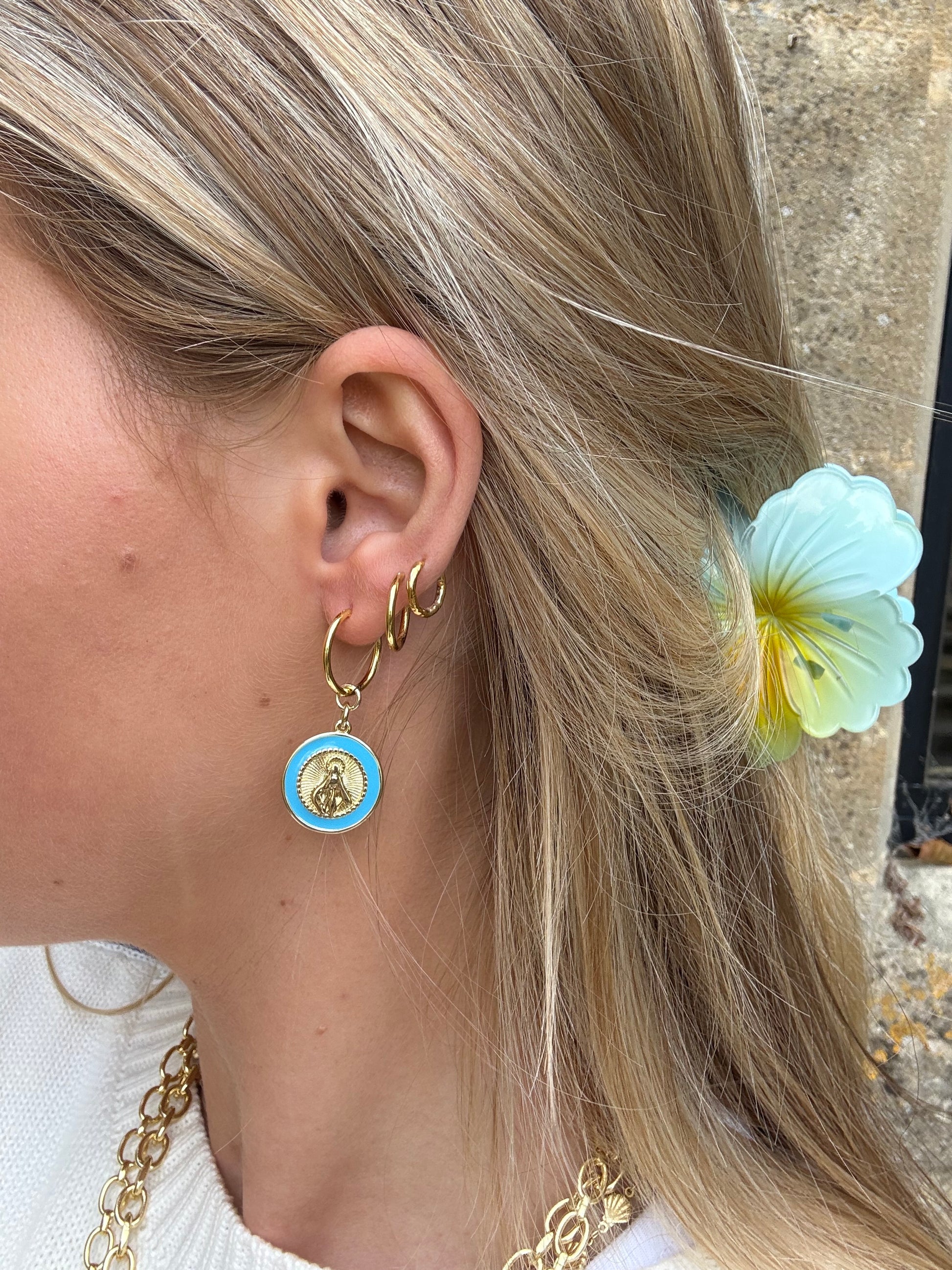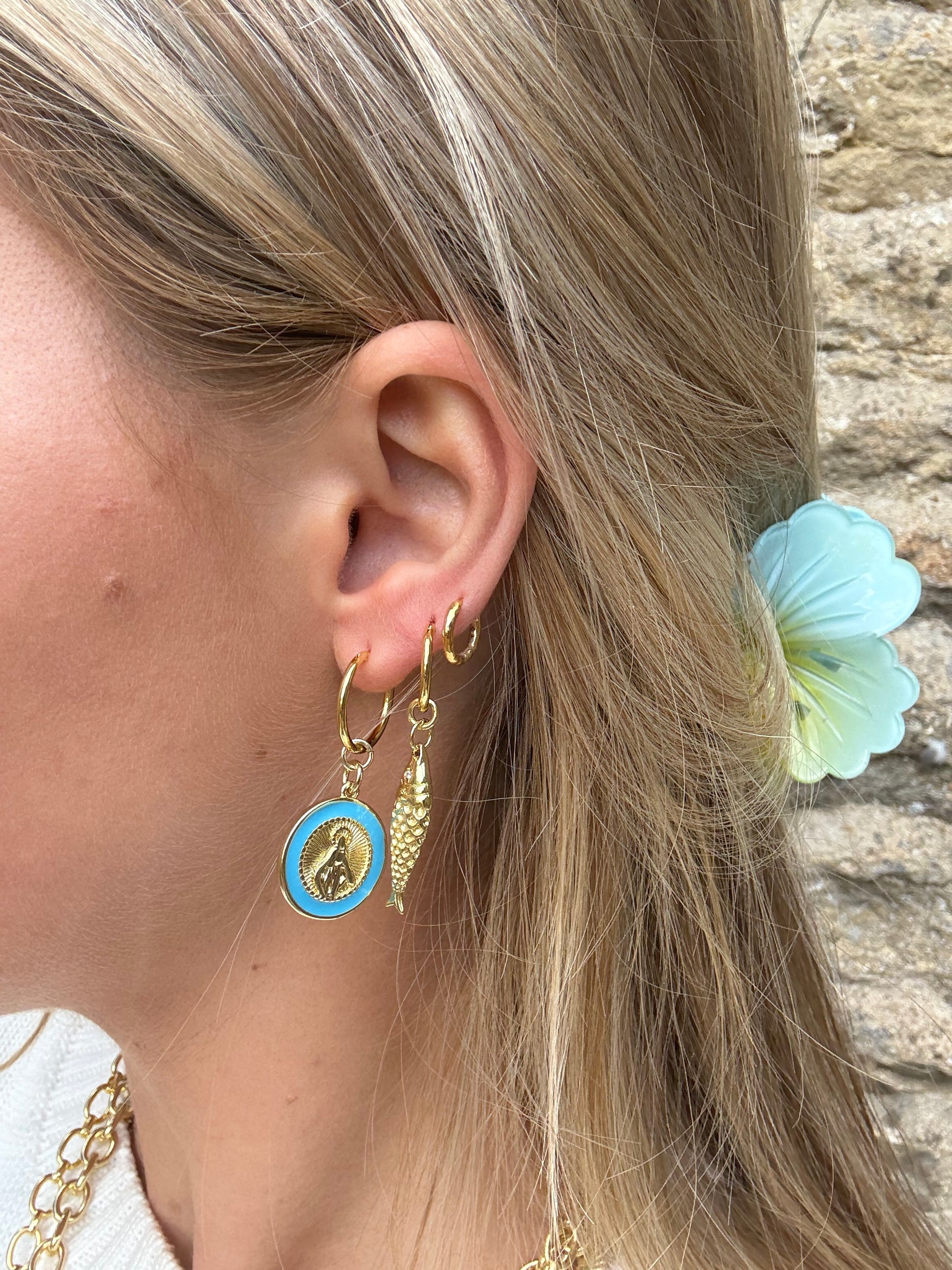 18k gold plated enamel pendant with 18k gold plated hoops.