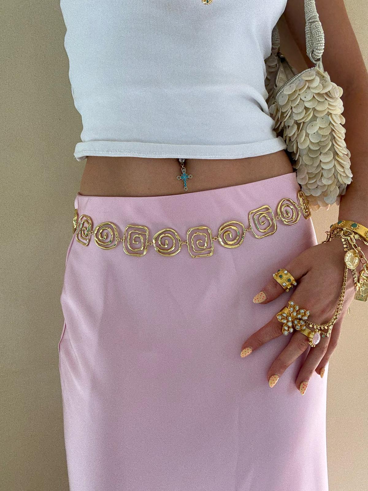 18k gold plated belly chain/belt, adjustable and fits sizes 6-10 waist.